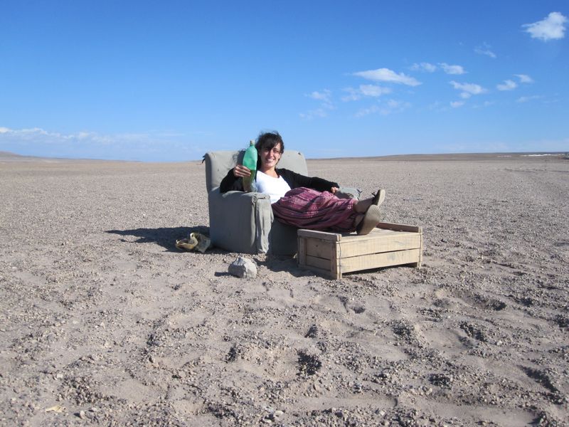 We found and old derelict desert sofa just begging to be sat on. This is Toni.